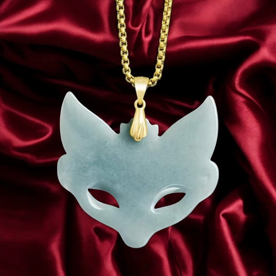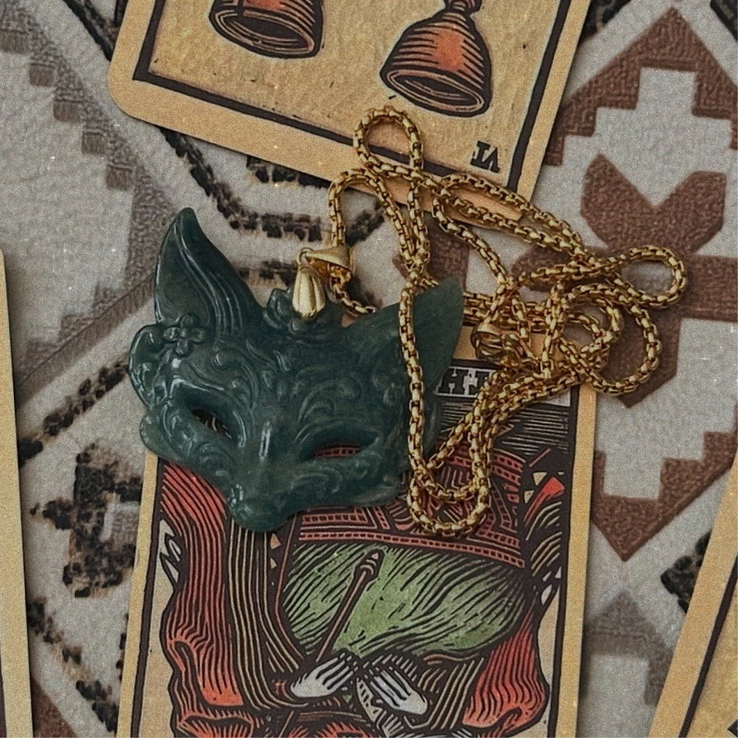 A fox-faced relic of cunning and chaos, Holy Ho Ly is hand-carved from deep green jade, wrapped in a 14k gold chain. A nod to trickster spirits and shadow-side seduction—this pendant dares to blur the sacred and profane.