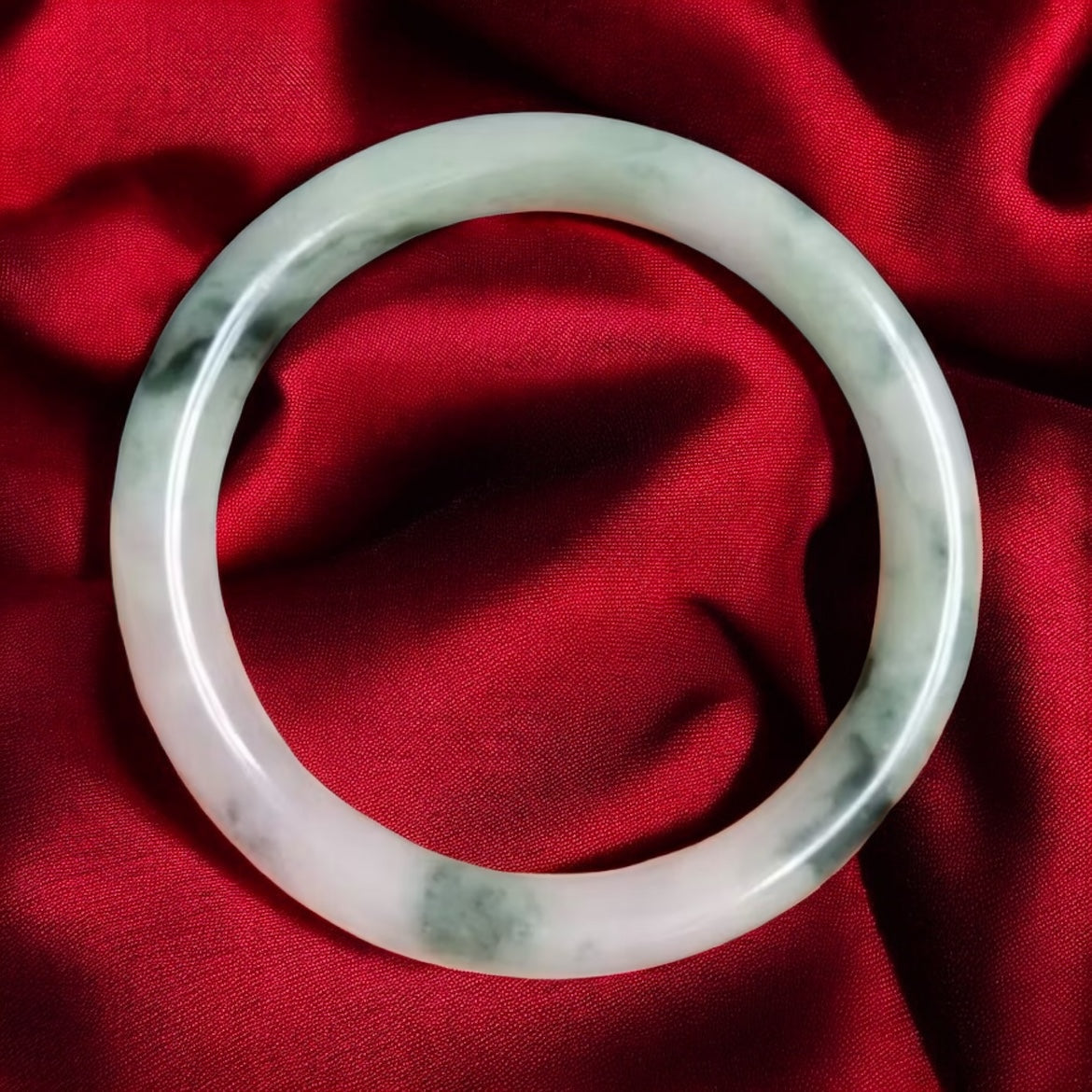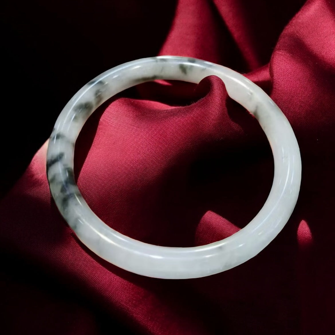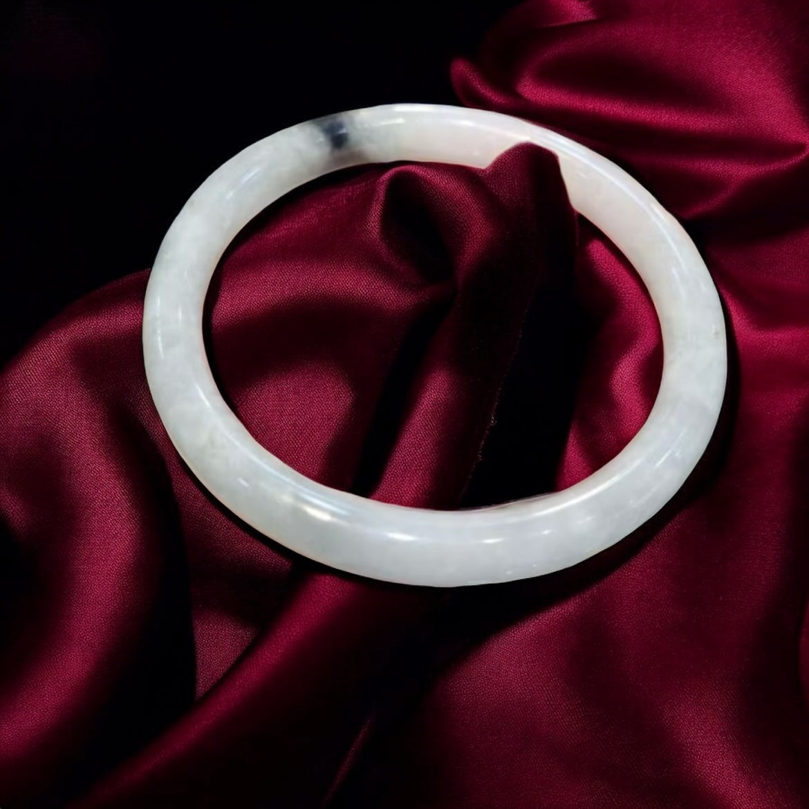 Crisp and luminous, this jade bangle reflects the purity of falling snow. Its translucent white tones, kissed with delicate natural variations, embody serenity, resilience, and renewal—like winter’s quiet strength and the promise of spring.