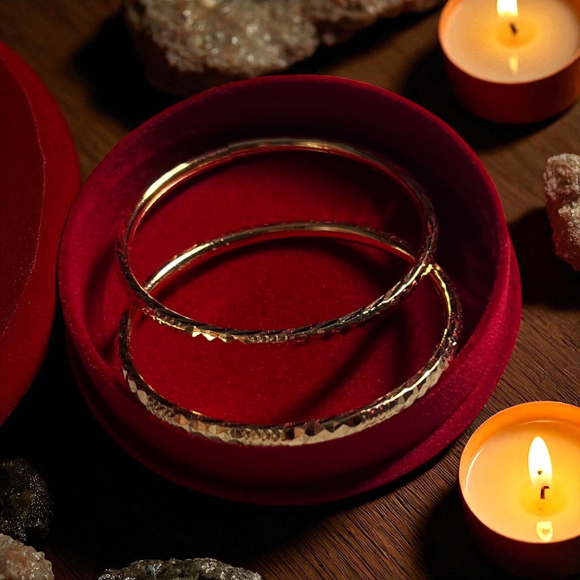 Dripping in opulence, Aurum Majesté is a testament to timeless grace. These 10k gold bangles shimmer with regal elegance, their polished finish catching light and envy alike. Wear them stacked or solo—either way, they command attention.